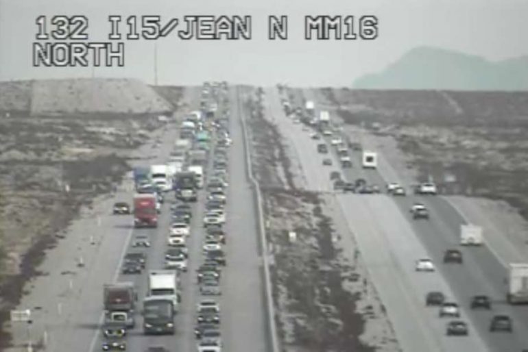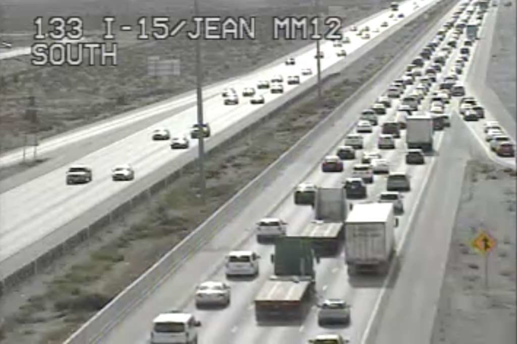 假期即將結束時,15號州際公路西行車道在週日車流眾多。內華達州南部地區運輸委員會表示,週日下午車道上塞了約21英里。