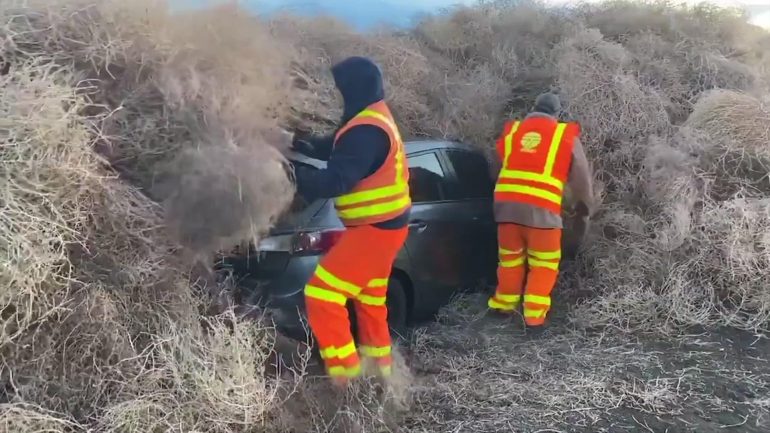 今年的新年夜,有一大堆的風滾草(tumbleweeds)突然湧上華盛頓州的一條公路,導致數台轎車和一台半掛式卡車都受困其中,州警察總共花了整整 10 個小時,才成功救出這些車輛和駕駛。