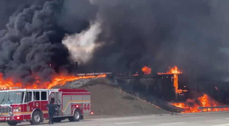 瑞斯指出,這場大火吞噬了一旁的坡道,對周遭區域造成嚴重且災難性的損害,而油罐車裡流出的油更是助長了火勢,火勢一路延燒了將近 500 英尺(約等於 152.4 公尺),橋的兩側都受到波及。