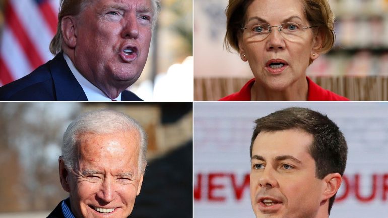 民意調查中發現,川普的民調緊隨佛蒙特州的參議員 Bernie Sanders(44%-47%),前副總統拜登(45%-47%)和麻州的參議員 Elizabeth Warren(45%-46%)。 但川普與前印第安納州 South Bend 市長 Pete Buttigieg(各佔44%)的民調並列,些微領先明尼蘇達州參議員 Amy Klobuchar(45%-44%)和前紐約市市長 Michael Bloomberg(45%-42%) 。