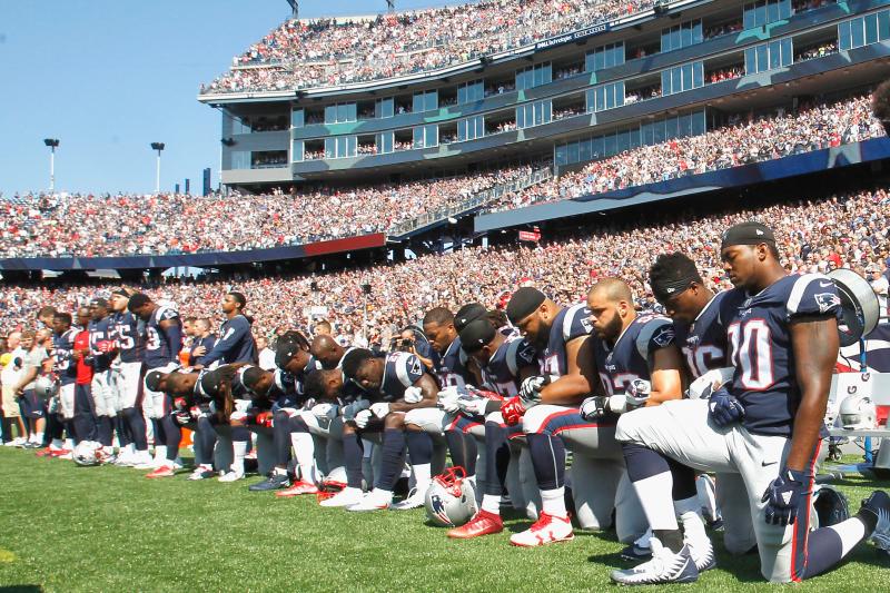 週五晚上,川普在阿拉巴馬州參加活動時提到那些球場上在播放美國國歌時單膝跪下和平表達反抗的NFL球員。他說:「難道你不會想看到一個NFL老闆在有人不尊重我國國旗時說『馬上離開田徑場、離開、他被開除了。』嗎?」而在週末時,川普再次透過推特重申自己的論點,他在貼文中表示,假如NFL粉絲直到球員對我們國家和國旗表達尊敬前都拒絕去看比賽,你就可以看到變化了。