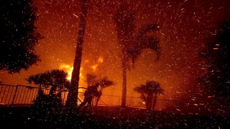 一個小時前,他看著火焰照亮了整個山脊,接著火焰因為風吹離家裡越來越近。