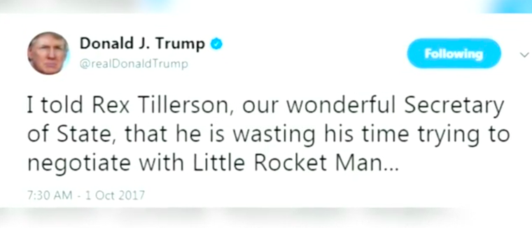 這兩則推文在提勒森造訪北京後出現,提勒森跟記者說政府已經建立與北韓的對話機制,並等著北韓回應。之前兩人在許多美國外交相關的決策都出現意見不同的情況,像是美國對NATO、墨西哥、波斯灣的政策,這些也讓大家開始好奇提樂森還會待在川普政府多久,以及他是否已經受夠了等問題。