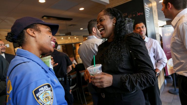 「到目前為止,星巴克已經舉辦了超過 300 場這樣的活動,並且將致力於在 2018 年前成功舉辦 1000 場以上。」而在星期三這天,城市周邊的許多商店也舉辦了類似的活動,包括 Dunkin’ Donuts 、麥當勞等等,「這個活動我覺得非常的好,當人民想要來跟我們警察講話或是表達意見時,但他們不一定想要走進警察局,像這樣跟大家一樣像是平等的一般民眾,大家也很願意友善地與我們對話。」紐約市警察局 NYPD 社區事務局局長 Joanne Jaffe 這樣表示。