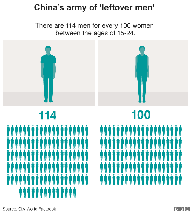 雖然中國在2015年推翻了臭名昭彰的一胎化政策,然而,一胎化政策所遺留下來的問題在未來幾年仍是個問題。30幾歲的未婚男子被稱作「剩男」。2015年,一名40多歲的中國商人據報起訴一家上海的介紹機構,未能找到妻子,已經支付了700萬元人民幣(約合100萬美元),進行了廣泛的搜索。
