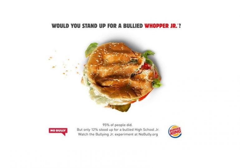 當一個速食連鎖品牌希望能夠利用一些特別的方式來接軌一些社會議題,像是「霸凌」,結果可能是會充滿爭議的,在這樣的情況之下,漢堡王就利用了「揍扁」一個漢堡來表達反對霸凌的聲音。