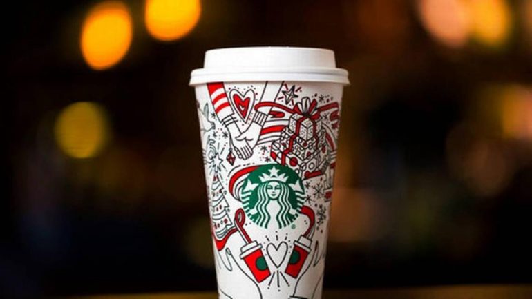今年星巴克秋冬天推出了新的外帶杯,底色依舊為白色,上面畫有許多充滿季節性的圖案,像是禮物盒、蝴蝶結、雪花、暖手套、迷你咖啡杯,並且本身上面已經有些許紅色及綠色的著色,客人可以依照自己的喜好自行設計著色,外帶杯瞬間化身隨身舒壓著色本,冰巴克也鼓勵民眾在設計完自己的咖啡杯後,可以在社群上以「#givegood」來分享自己的作品。