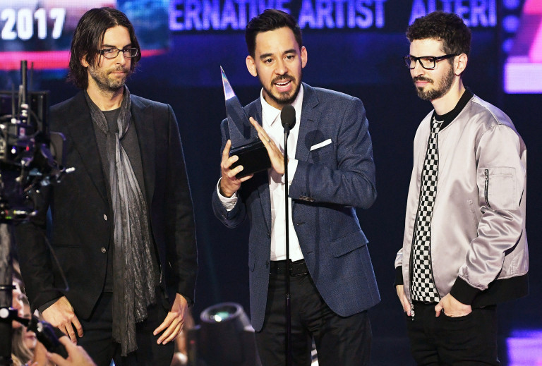 在台上,身旁站著其他成員Brad Delson和Rob Bourdon,Shinoda說:「我們想要將這個獎奉獻給他、他的記憶、他的才華、幽默和快樂。」「無論你是歌迷或是歌手,請花一秒好好感謝你擁有什麼,讓Chester感到驕傲。」