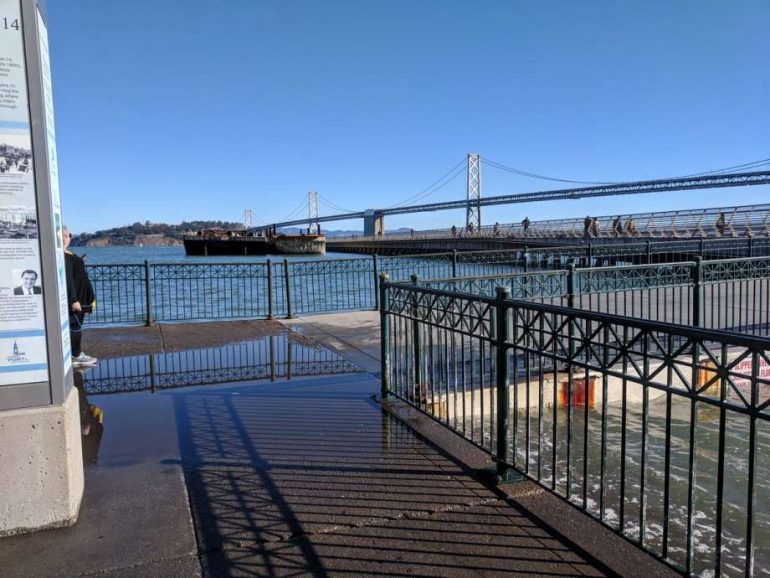 「我們有這種令人討厭的洪水、或者是晴天的洪水,你會看到Embarcadero地區的一點點水,例如在漲潮的最高點,我們所有的沼澤都會被淹沒,而且這些水看起來好像要流到37號公路上了。」她說。「在陽光明媚的日子裡,我們通常不會得到一堆潮濕的基礎設施。然而,當風暴發生時,你會看到停車場在好天氣發生洪水,而且在路上看到了水。」