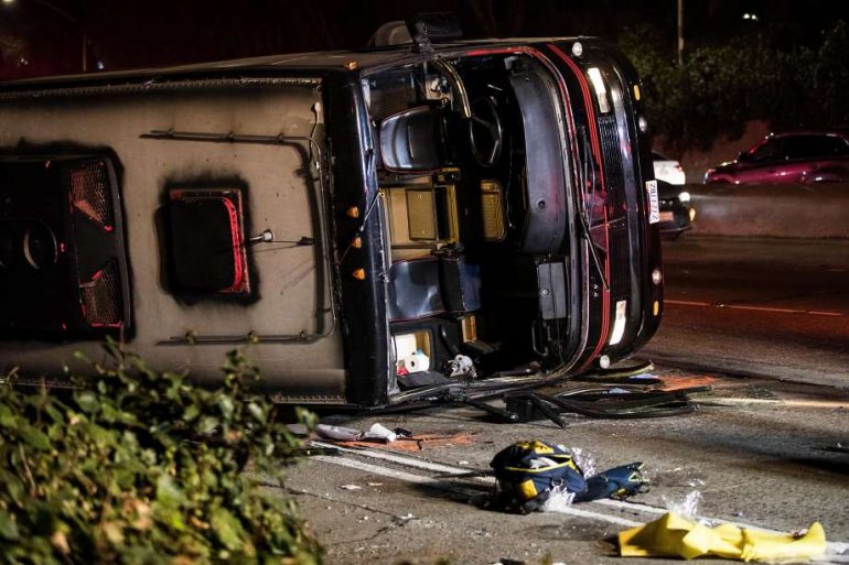 根據加州公路巡邏隊(California Highway Patrol)的說法,這輛巴士在星期五晚上在塞薩爾查韋斯街(Cesar Chavez Street)北面的101號高速公路上行駛,經過舊金山南行,當時它在側面翻滾,高速公路上滑行,使30人受傷。