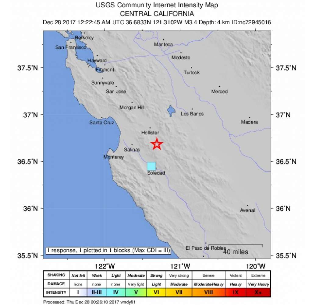 Home加州Tres Pinos發生規模3.4地震 天氣 加州Tres Pinos發生規模3.4地震 美國地質調查局週三報告,加州Tres Pinos附近發生規模3.4地震。 當地時間下午4點22分,地震深度約4公里。關於地震造成的損害或傷害尚未有任何初步的說法。有關這次地震的更多信息,請參閱USGS網站。 資料來源:Magnitude 3.4 earthquake strikes near Tres Pinos, CA 留言 (Visited 40 times, 1 visits today) 分享此文:Tweet 相關 Jessica "Keep your eyes on the stars, and your feet on the ground.” - Teddy Roosevelt Share This Previous Article兇殺案?兩大兩小陳屍紐約公寓 Next Article聖誕節前夕妻被狗咬死 夫:狗主人該負責 2017-12-27