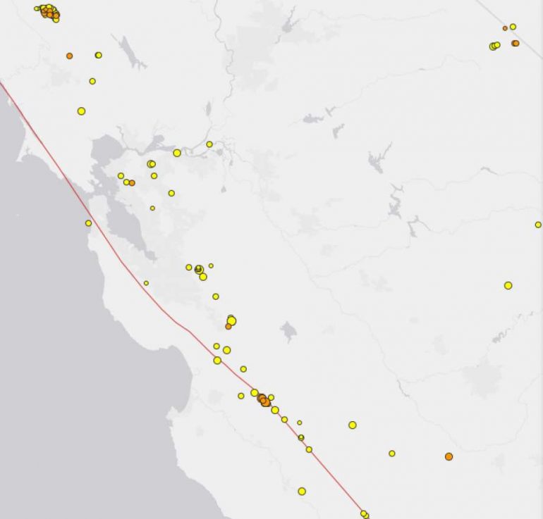 最近幾天在舊金山灣區附近錄得到將近30次小型地震,其中包括一次規模3.9的地震。
