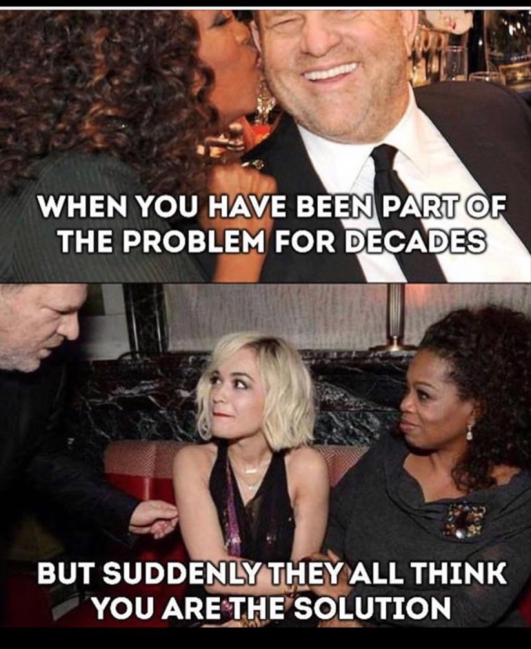 然後,Seal貼了一張了歐普拉和哈維溫斯坦的兩張照片,上面寫著:「當你幾十年來一直是這個問題的一部分,但是突然間,他們都認為你是解決方案。」