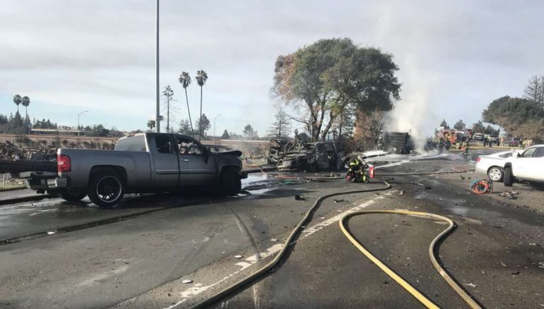 警方表示,初步證人報告顯示,一輛商用卡車司機在駛往門多西諾大道時,車輛失去了控制權。這輛卡車在進入十字路口時與九輛車相撞,而其中五輛客車燃燒起來,卡車最終停在門多西諾高架東行車道上。
