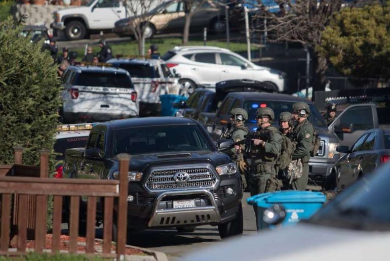 索諾瑪縣警長辦公室發言人Misti Harris說,第一起入侵事件發生在富爾頓路1900號大約凌晨4時40分。有一名男子被槍射擊,並被送往醫院,但並未被認為有生命危險。