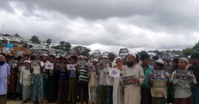 50多名緬甸羅興亞難民於本週三集結於孟加拉的一處難民營,抗議緬甸政府因為兩名路透…