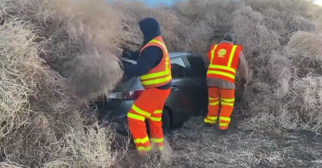今年的新年夜,有一大堆的風滾草(tumbleweeds)突然湧上華盛頓州的一條公…