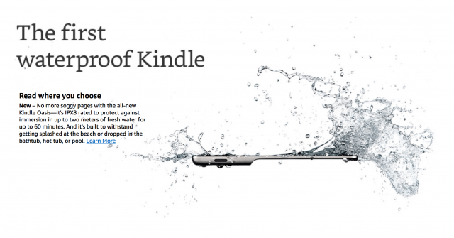 Amazon新推出了第一台防水的Kindle Oasis,適合在如廁或泡澡時使用,享受閱讀時光。