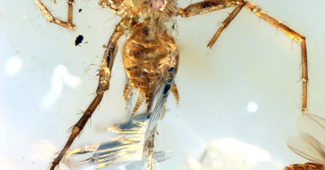 研究團隊在緬甸琥珀市場發現新物種,可能是蜘蛛的近親,多了一條長尾巴。