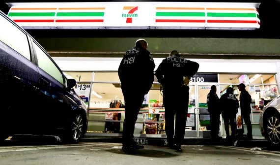 在星期三清晨,移民和海關執法局(ICE)的搜查員向全國98家7-Eleven直營…