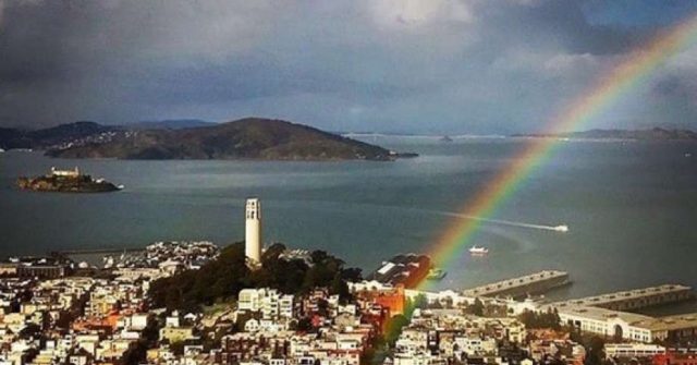 北加州星期四下午一陣雷暴雨降雨過後,該地區彩虹高掛。 預計大部分雷擊地點都會在海…