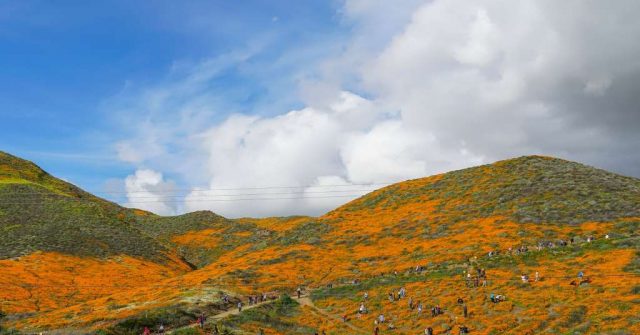 加州罌粟花在南加州周圍山區罕見盛開,吸引了如迪士尼樂園一般的大批人潮,使得當地官…