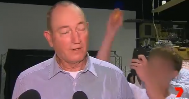 當一名右翼澳洲政治人物於週六在墨爾本接受媒體訪問時,一名少年忽然對著這名政治人物…