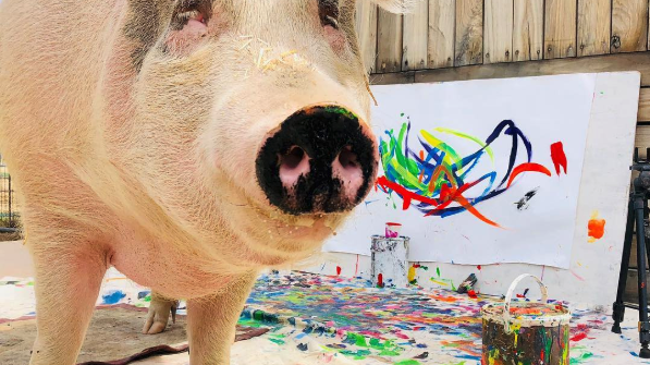 來見見這隻風靡藝術界的豬豬 Pigcasso 吧!體重一千磅的 Pigcasso…