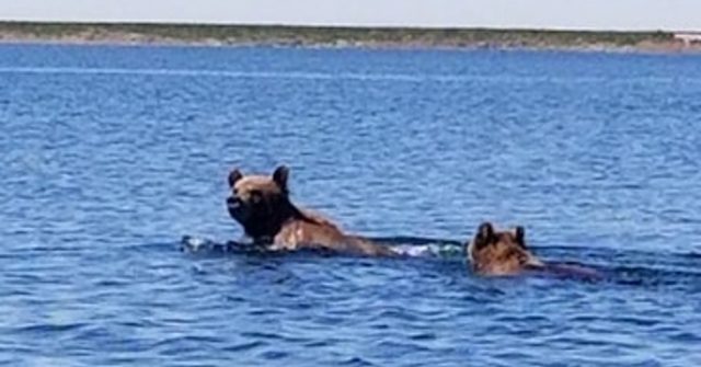 星期六,有民眾在蒙大拿湖西北部看到兩隻灰熊泳渡,驚奇地拍下灰熊游泳的影片,放上網…