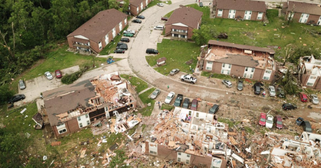 週四,美國中部地區天氣惡劣,龍捲風襲擊了密蘇里州、大雨淹沒了奧克拉瑪州的河流,死…