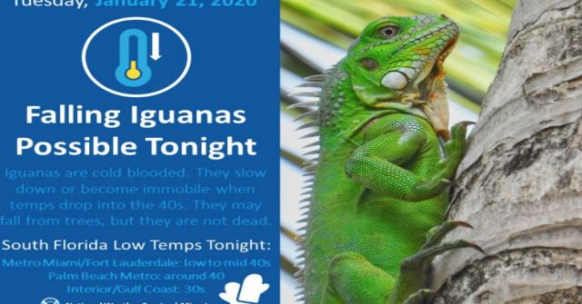 國家氣象局這週對佛州的部分居民,發出了一個奇特的警告:請注意可能從天而降的鬣蜥。…
