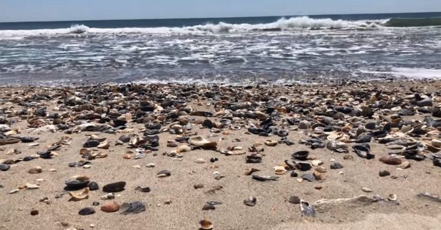 由於新型冠狀病毒大流行,北卡羅來納州外灘上遊客大幅減少,因此堆積了大量貝殼。 C…